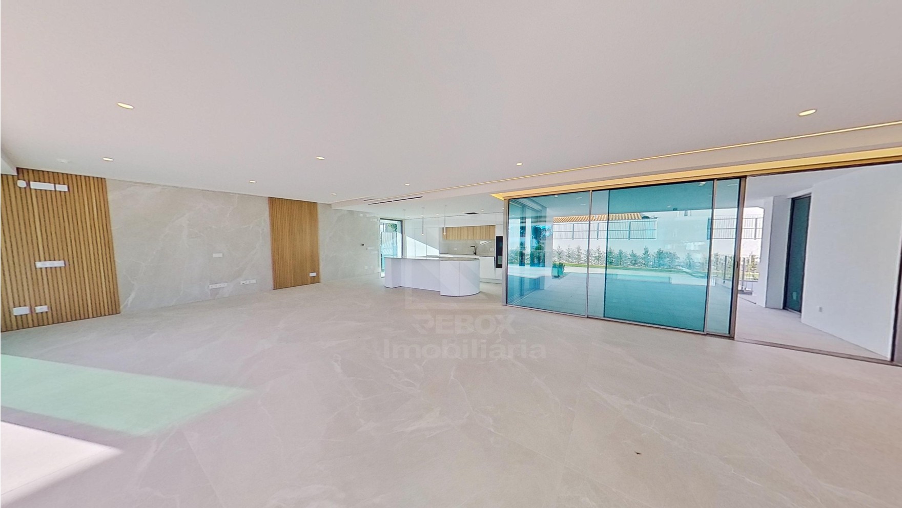 Sala de Estar e Jantar: 60 m² em open space, com acesso direto ao jardim e piscina.